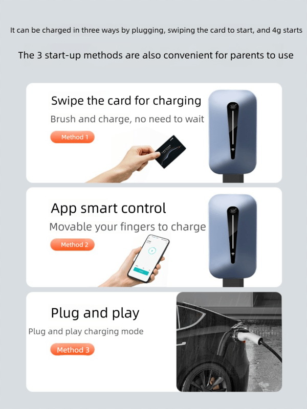 It features excellent safety protection, including over - voltage, under - voltage, over - current, and leakage protection. With functions such as power supply indication, charging status display, and emergency stop, it ensures safe and reliable charging for electric vehicles. It also supports card - swiping and APP - based startup modes.